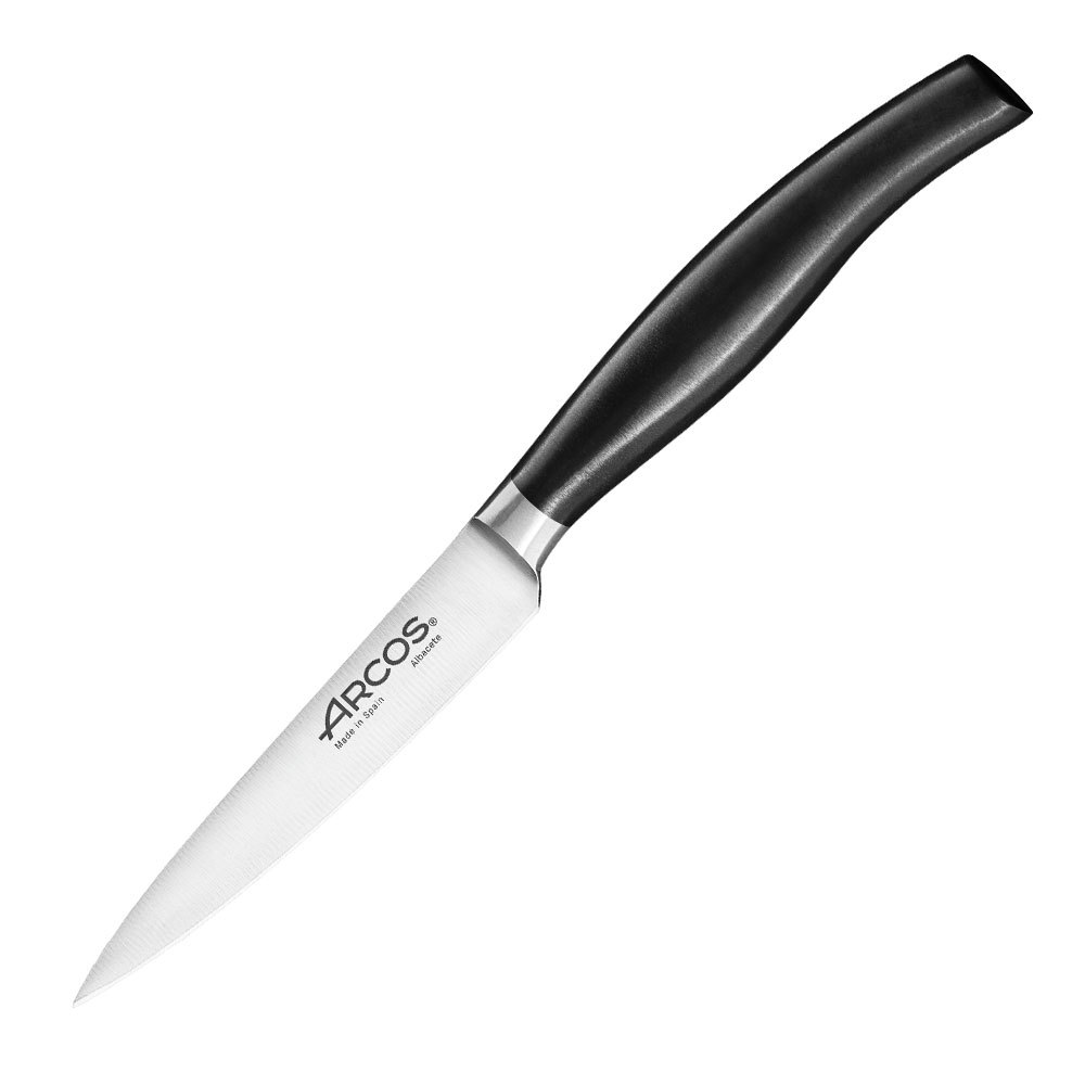 - Твердість леза і міцність краю ножів Arcos перевищують середні по галузі значення. Тривала гострота ножа і його зносостійкість забезпечується через твердість сталі, тому потреба в заточенні виникає рідше.