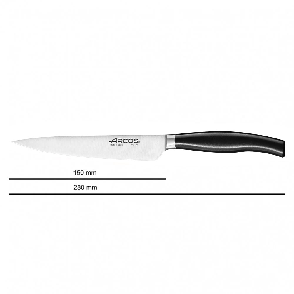- Твердість леза і міцність краю ножів Arcos перевищують середні по галузі значення. Тривала гострота ножа і його зносостійкість забезпечується через твердість сталі, тому потреба в заточенні виникає рідше.