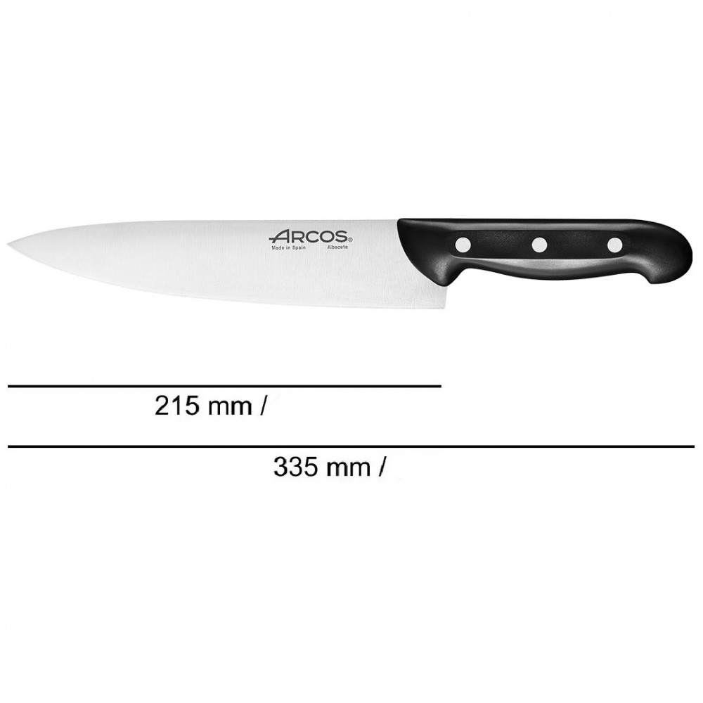 Ніж поварський 215 мм серії «Майтре» Аркос – багатофункціональний шеф-ніж, підходить для шаткування овочів та фруктів, обробки, нарізання м’яса та риби та інших робіт.