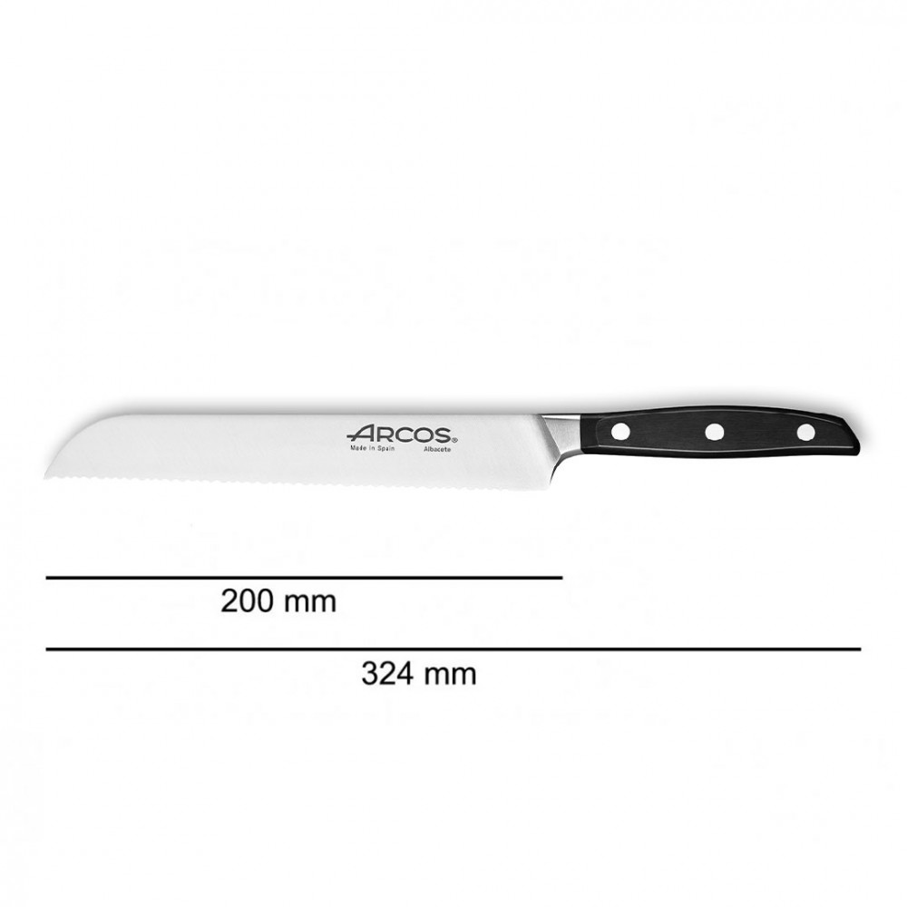 Лезо ножа для хліба зубчастого виготовили з ексклюзивної нержавіючої сталі NITRUM, що має надвисоку ріжучу здатність, підвищену твердість та корозостійкість. Неперевершену гостроту леза створили за технологією «шовковий край». У результаті лезо ножа arcos довго не затуплюється, не ржавіє, тому виріб має довгий термін служби, забезпечуючи економічну ефективність інвентарю.