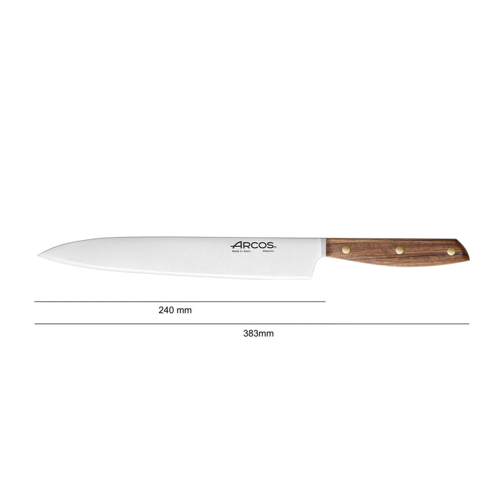 Елегантний дизайн серії ножів для кухні «Нордіка» Аркос із заокругленою формою леза та рукояткою з дерева ованкол запобігає тертю, натомість забезпечує м'який захват рукоятки професійного ножа.