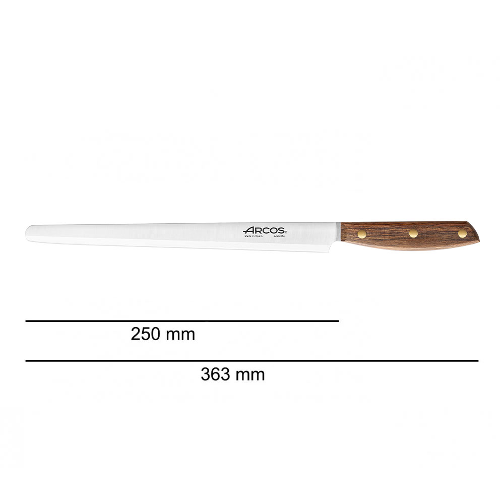 Ніж для хамону 250 мм серії «Нордіка» Аркос зручний для акуратного зрізання тонких шматків хамону чи окороку завдяки довгому та гнучкому лезу.