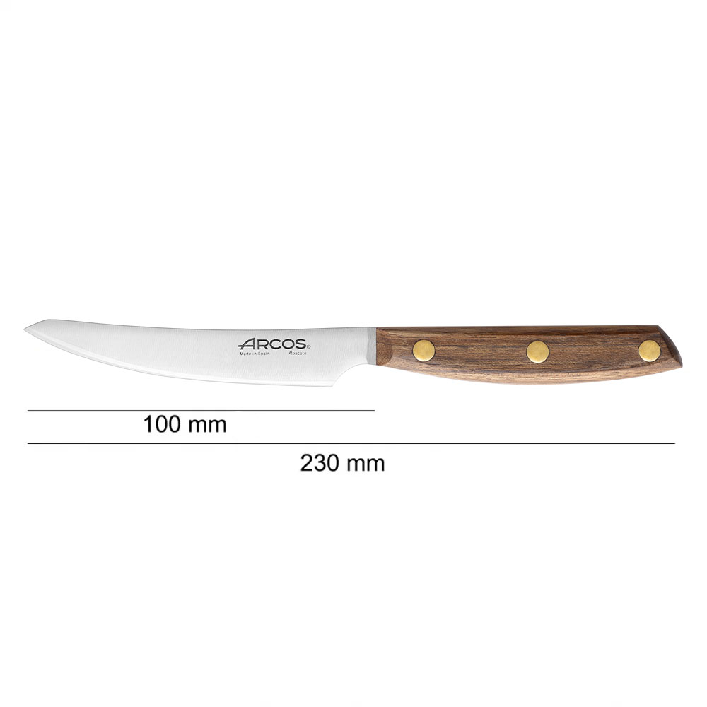 Ножі Arcos серії Nordika виготовлені з прокатної сталі Nitrum методом штампування. Склад сталі наближений до кованих ножів. Прокатні ножі – тонкі, легкі, невибагливі, стійкі до вологи. Такі ножі легко правити та точити.