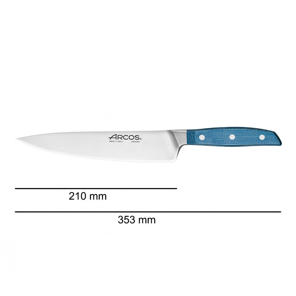 Нож поварской 210 мм серии «Бруклин» Аркос с голубой рукояткой - многофункциональный шеф-нож, подходит для шинковки овощей и фруктов, разделки, нарезки мяса, рыбы и других работ.